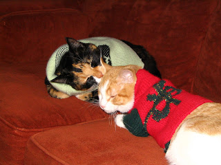 Boy did I fool them. Not many months went by and I showed them that I can eat and that it is my favorite thing to do. I was very dirty but they didn't mind and helped to clean me up. This house they took me to had another cat that wasn't too happy that I was there. She would do drive-by hissings at me wherever I went. After awhile she started to warm up to me but I think sometimes she only tolerates me. I love my big sister though, I like to chase her and steal her foods.
